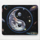 Yin and Yang symbolise the forces of cosmic energy and cosmic balance. Yin is all that is "feminine" receptive and magnetic, dark. Yang is the "masculine" active and kinetic force, light. However as they flow together, each of these forces are shown to hold a small dot of the other within them.