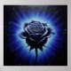 This fantasy poster features a stunning dark blue rose glowing with radiant blue light, set against a cosmic starry background, symbolising mystery, elegance, and the infinite beauty of the universe. Finished as an oil paint art print.