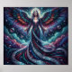 This fantasy poster features an ethereal cosmic angel with radiant halo and multi-colored wings, flowing star-streaked gown and celestial bubbles—surreal spiritual art evoking wonder.