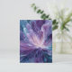 This postcard features a swirling violet and indigo bloom with pearlescent whites, fluid petals radiating from a luminous center - an abstract cosmic flower symbolizing creation.