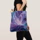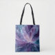This tote bag features a swirling violet and indigo bloom with pearlescent whites, fluid petals radiating from a luminous center - an abstract cosmic flower symbolizing creation.