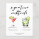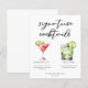 This sophisticated signature cocktails menu features simple black typography above 2 of your favourite drinks and their ingredients for your coastal wedding bar. A chic Cosmopolitan and gin and tonic drawing add a fun flair to your bar menu. Complete with the couple's names and date for their reception.