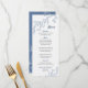 Delicate blue leafy branches trail against a white blue background on this menu. This unisex design is perfect for any celebration.