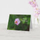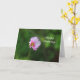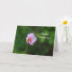Photographic image of a pink Cosmos wildflower on a background of softly blurred green foliage printed on a birthday card.
