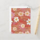 Keep in touch with friends and loved ones with a beautiful chiyogami pattern postcard featuring pink and white cosmos flowers on a red background.