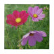 Pretty trio of red and pink cosmos flowers nature ceramic tile or trivet. Photography by Susan. Click on Customise to add text. Contact me with any questions or requests. This image is available on many products in my gallery. Please visit Smilin' Eyes Treasures to see more flower and nature photography and digital art cards and gifts.