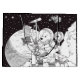 Artist by Zolotareva.Digitally Vector graphics. cosmos cartoon.Puppy in space an alien with a telescope.