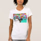 Product arrived fairly quickly but was disappointing. I ordered a women's Slimfit Medium but the shirt fits an 8 year old boy. Printing quality is poor, as is the overall quality of the t-shirt fabric.