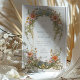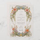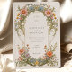This exquisite wedding invitation set features a stunning Art Nouveau design adorned with intricate wildflower motifs. The front of the invitation beautifully frames the wedding details with lush green foliage and delicate wildflowers in shades of pink, blue, orange, and yellow, set against a classic white background. The back of the invitation showcases a symmetrical arrangement of matching wildflowers, creating a cohesive and sophisticated look. Perfect for a garden or vintage-themed wedding, this invitation set combines timeless elegance with artistic beauty, making it an unforgettable piece of wedding stationery.