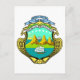 The official coat of arms of the Republic of Costa Rica was designed in 1848, with modifications in 1906, 1964, and most recently the 1998 addition of smoke to distinguish three volcanoes.