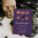 Cute and fun halloween party invitation template card featuring hand drawn illustration of dogs in costumes.