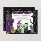 Cute children's costume party Halloween invitations with cute hand drawn kids dressed up like a vampire, mummy and witch.