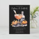 This festive invitation features a jack-o'-lantern Halloween cocktail. The words "costumes and cocktails" are written in a fun script font. It's the perfect way to invite your friends to a spooky-sweet Halloween party where they can come dressed up in their costumes and enjoy a delicious Halloween cocktail.