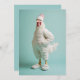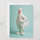 A whimsical, anthropomorphic chicken dressed in a fluffy white suit, cosy slippers, and a beanie. With a confident stance and a soft pastel background, this surreal character blends humour and creativity, making for a unique and eye-catching visual for a chicken lover or easter