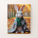 This charming puzzle features an adorable white bunny in a stylish grey coat and green scarf, sitting against a picturesque autumn backdrop. Bright autumn leaves and warm colours create a cosy and inviting scene, making this puzzle the perfect activity for a relaxing day. The puzzle pieces are well-crafted, ensuring a satisfying and enjoyable assembly experience. Ideal for both children and adults, this puzzle not only entertains but also serves as a wonderful seasonal decoration once completed