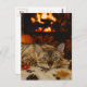 Cosy Autumn Cat Fireplace Warm Fall Postcard