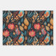 Cosy Autumn Floral Print Digital Folk Art Wrapping Paper Sheet