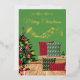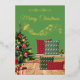 The Cosy Bench Merry Christmas Foil Holiday Card is a unique and festive way to celebrate the holidays with family and friends. It features a cosy scene with a Christmas tree, throw pillows, a music measure, and music notes. One can almost hear Christmas music playing in the distance. Customise your card for a special personal touch.