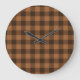 Cosy Brown Plaid Buffalo Print Pattern Large Clock