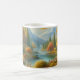 This breathtaking landscape painting captures the essence of autumn in all its splendour. A cosy cabin nestled amidst a vibrant forest of golden leaves invites you to escape the hustle and bustle of everyday life. A tranquil river meanders through the scene, reflecting the colourful foliage and creating a sense of peace and serenity. A small boat rests at the water's edge, beckoning you to explore the picturesque surroundings. Pumpkins and wildflowers add a touch of warmth and charm to this idyllic scene.