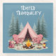 Escape into the serenity of the great outdoors with this cosy camping aesthetic featuring a charming pink glamping tent nestled among tall evergreens. A warm campfire crackles at the centre, surrounded by Adirondack chairs, s’mores, and a lantern, creating the perfect retreat for adventure seekers and nature lovers alike. The soft colour palette and whimsical details give this design a dreamy, cottagecore-inspired feel, evoking the magic of peaceful nights under the stars. Whether you're drawn to the adventure lifestyle or simply love the idea of a tranquil escape, this illustration captures the essence of wanderlust and outdoor relaxation. Ideal for those who embrace the beauty of nature, glamping vibes, and cosy campfire moments. AI generated artwork.