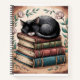 This enchanting notebook cover design features a peaceful black cat curled up atop a stack of vintage books, surrounded by delicate floral accents. Perfect for book lovers, writers, and dreamers, this design evokes a sense of warmth, wisdom, and tranquillity—making it an ideal companion for journalling, note-taking, or storytelling