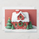 This festive Christmas card features a charming red cottage covered in snow, surrounded by two beautifully decorated Christmas trees. The cosy scene is perfect for spreading holiday cheer and evoking feelings of warmth and comfort. Ideal for sending to loved ones to wish them a Merry Christmas and a Happy New Year.