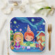 Cosy Christmas new year . Girl boy and cat Paper Plate