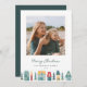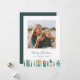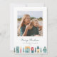 A sweet and festive holiday card design featuring a single square photo with an illustrated bottom border of hand drawn houses and trees in holiday colours. "Merry Christmas" or your choice of greeting appears beneath your photo, along with your family name and the year.