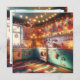 Cute teal cosy vintage kitchen full of holiday decorations and Christmas lights and retro vibes. Wishing you a cosy old-fashioned Christmas and a Happy New Year. Back text of this holiday card can be personalised, so you can add your name if you want or change the holiday greeting.