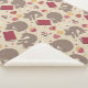 My own hand drawn illustrated pattern. All the necessary favourites for a cosy night in; a good book, mug of cocoa, candy, cookies and cake decorating a snuggly sherpa blanket.