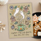 This cosy, cute holiday card features hand-drawn artwork that blends Halloween and Christmas with a fun, spooky twist. A steaming mug releases ghost-shaped steam, surrounded by holly leaves and festive cookies decorated as skeletons, spiderwebs, and skulls. The upside-down candy corn topped with a star cleverly mixes Halloween charm with classic Christmas spirit. Perfect for anyone who loves a spooky holiday season, this design brings warmth, whimsy, and a little unexpected magic to your winter greetings. Three photo frame on backside for showcasing your favourite family photos with room to write a short yearly recap under each photo. Also available as an instant digital download, it’s easy to send your unique holiday wishes right away.