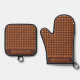 Cosy Fall Orange & Brown Buffalo Plaid Gingham Oven Mitt & Pot Holder Set