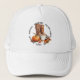 Celebrate the warmth and beauty of fall with this cosy autumn trucker hat featuring boots, pumpkins, a cup of coffee or pumpkin spice latte, and colourful autumn leaves. The words "Sweaters, Falling Leaves, Pumpkin, Cider, Hayrides, Bonfires" capture the magic of the season, making this perfect for fall lovers, Thanksgiving gatherings, and autumn.