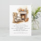 Warm and inviting Friendsgiving dinner invitations featuring a watercolor illustration of a fireplace decorated with fall foliage and pumpkins. Reverse side is a warm off-white colour. (Background colours can be changed by using the design tool).