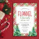 This Flannel and friends Christmas party invitation features a cosy Christmas coloured plaid patterned border accented with holiday trees.