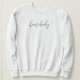 Beautiful and exclusively printed. Designed with your body and lifestyle in mind. Funny crewneck humour featuring "homebody" text in flirty black script and cute pink hearts.