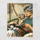A pretty lady relaxing in her cosy Papasan chair reading a book, drinking coffee with a cute black and white cat sleeping on her lap. A cute postcard to keep in touch and say hi to a friend!