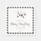 Modern simplistic cosy nature, Christmas party paper napkins. Watercolor branch adorned with pinecones and decorative star ornaments, chic typography design with trendy plaid pattern border.