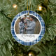 Cosy Navy and Blue Plaid fabric Family Photo Ceramic Tree Decoration