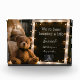 Celebrate the joyous news of your pregnancy with this adorable bear-themed announcement! This charming design features a cute bear sitting next to a letter board illuminated by soft LED lights, creating a warm, magical atmosphere. The nighttime setting adds a cosy, intimate feel, making it the perfect way to share your exciting news with friends and family.