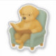 🐶 A sweet Labrador dog wearing cosy clothes and glasses, sitting peacefully in a soft armchair with a warm smile, deeply absorbed in a book.