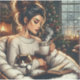 Cosy Scene | Woman Drinking Cocoa with Cat
