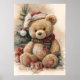 Cosy Teddy Bear with Santa Hat and Christmas Tree Poster