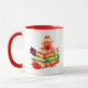 This two tone high quality mug has the perfect Autumn vibes with hand painted watercolor illustration on its front with set of hard bound vintage books in Fall colours. On top of the Autumn books is a jar candle with warm glow to infuse warmth, inspiration and positivity for the season. The watercolor illustration has Autumn leaves here and there for cosy Fall vibes. Perfect for self use as well as gifting in addition to being great Fall home decor accessory. The text "Cosy Up!" is fully customisable.