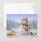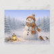 Cosy Watercolor Winter Snowman with Birds Holiday Postcard