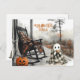 Cosy White Ghost Rustic Fall Porch Halloween Vibes Holiday Postcard