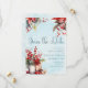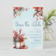 Cosy winter watercolor design featuring modern handwritten style script, bouquet of rowanberry and evergreen tree twigs on snowly background. This delightful invitation sets a perfectly hygge scene The text can easily be personalised for a unique one of a kind design for your special day.