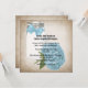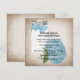 Pretty square wedding invitation done in a cottage chic style, with an antiqued looking background. Lovely graphics of a mason jar, with a country blue bow, with a country blue hydrangea bloom, in front. Personalise the black text for your special day. Matching wedding products available.