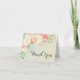 In lovely cottage chic style, this thank you note card incorporates feminine roses in peach, pink and off-white with a vintage watercolor background in blue, beige and peach.
